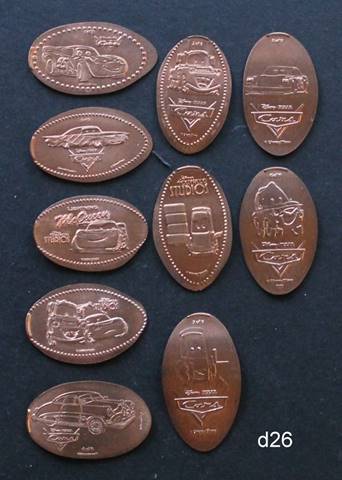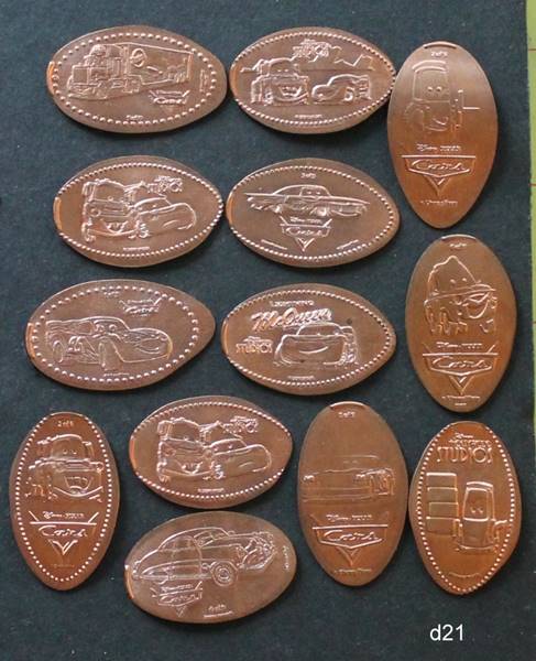 different copper coins from the Cars sets (both the numbered set and