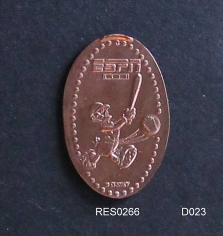 single coin on uncirculated copper from the retired machine at the ESPN Zone at