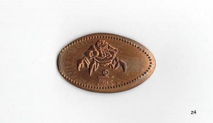 from the Animal Kingdom restaurant, rolled on an AU or BU quarter. Presscoins #AK0071. |