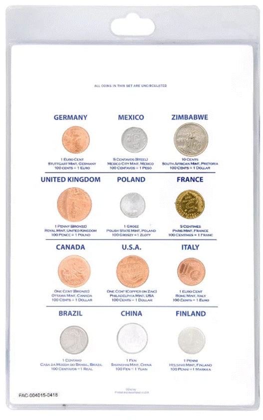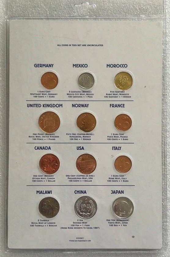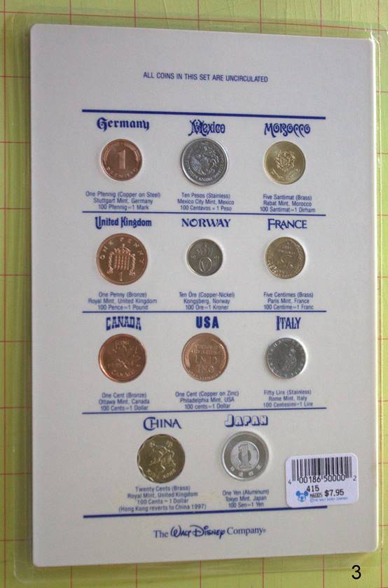 These early sets also had Hong Kong coins to represent China. The initial 11-coin versions I have