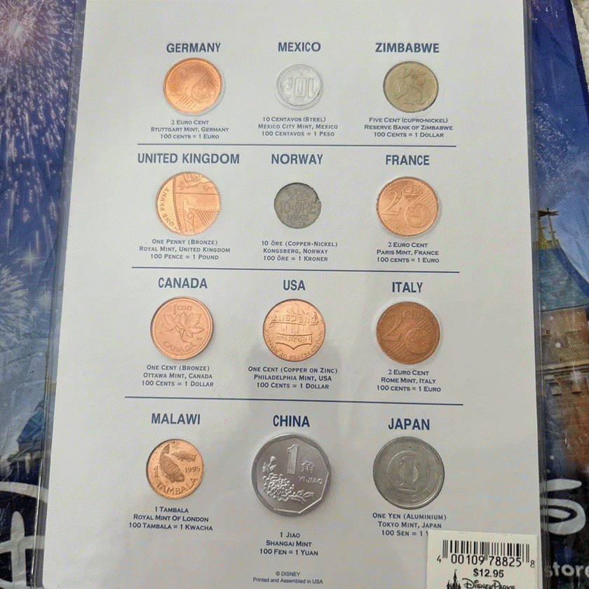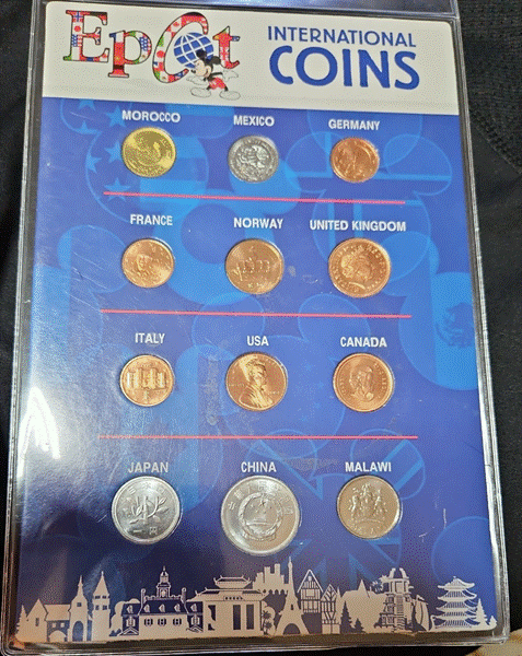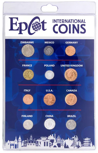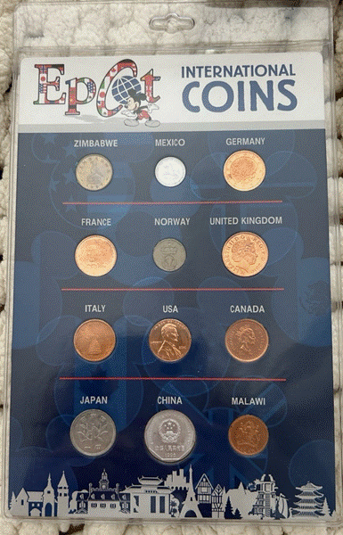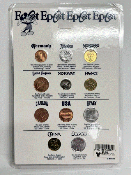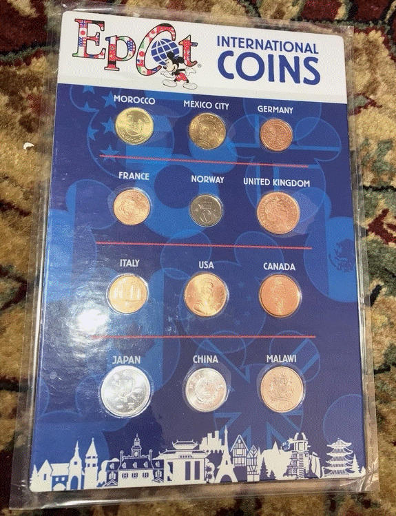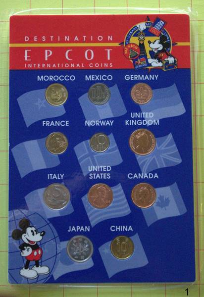 contained 11 coins, representing the major pavilions at Epcot: U.S., Canada, Mexico,