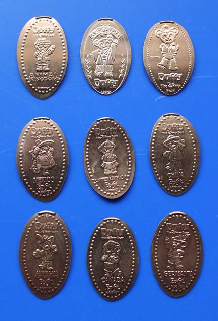 Epcot – Set of 9 Duffy coins from Epcot (8) and