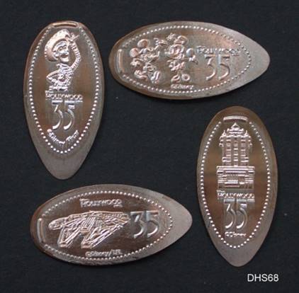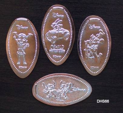 to the Hollywood Junction information kiosk when the Prop Shop area closed. These are copper cents. Designs: Sulley,