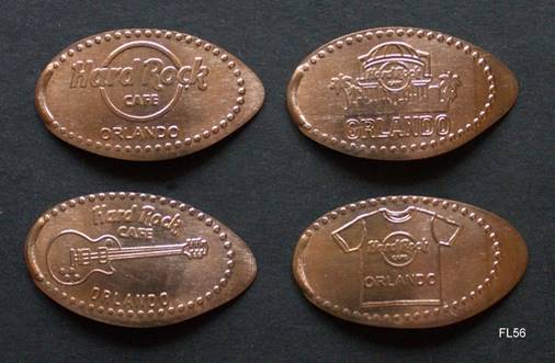 complete set of 4 pressed on copper cents from this creative attraction. Designs: