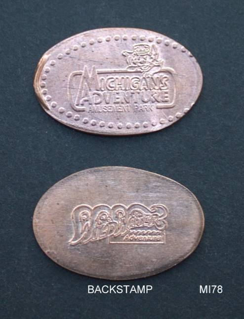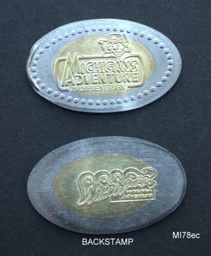 retired machine from Michigan’s Adventure amusement park in Muskegon. It has a logo on one side and a backstamp