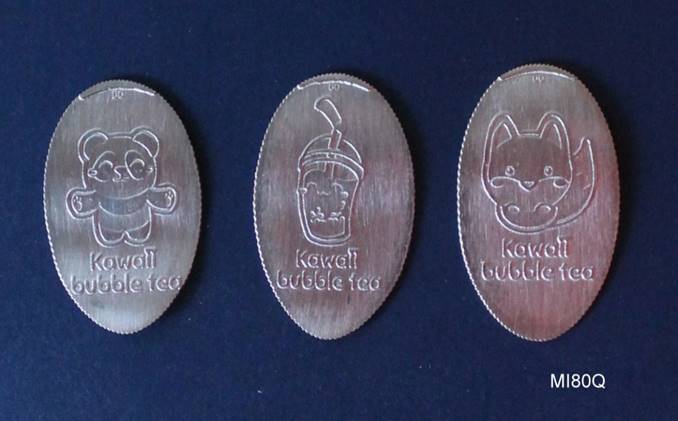 rolled on uncirculated copper pennies. Designs: Mooville logo; cow; ice cream & corn stalks;