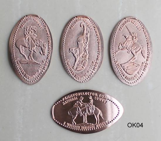 The 4-die penny press uses circulated and cleaned zinc pennies.  Most are in good condition, but an occasional penny will show signs of wear or staining.