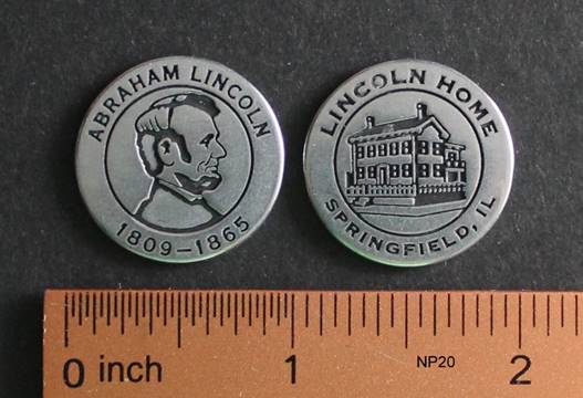token from the Lincoln Boyhood Home (but designating the Birthplace). Both sides shown in photo. |