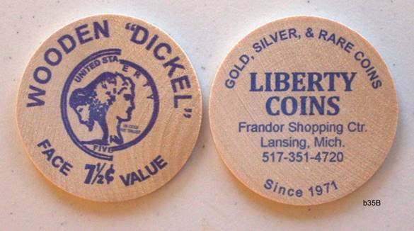 oversized wooden 7-1/2 cent piece from Liberty Coins in Lansing,