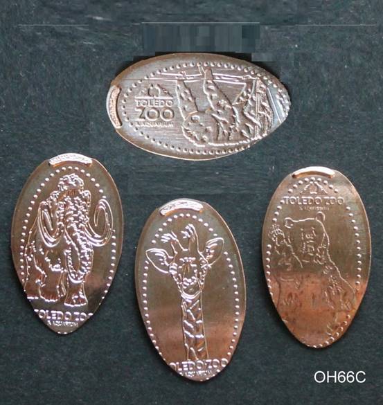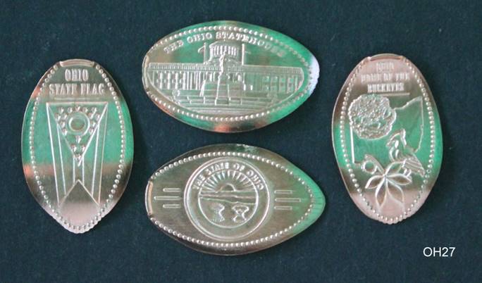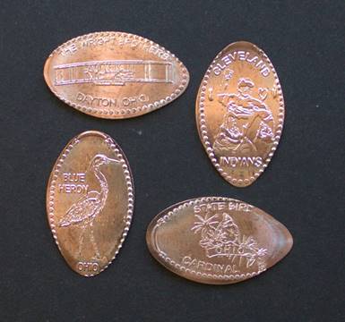OHIO TURNPIKE – Mahoning Valley service plaza Westbound mile marker 237 Complete set of 4 pressed on new zinc pennies