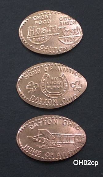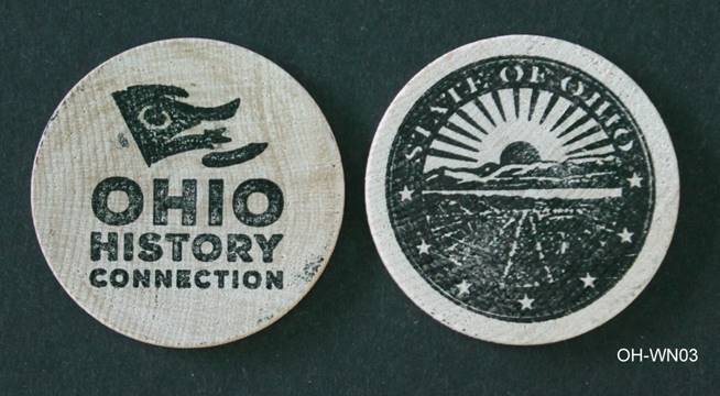 OHIO TURNPIKE ZINC COINS MILE 76 WESTBOUND (GENOA) Designs: Wright Brothers plane, Cleveland Indians