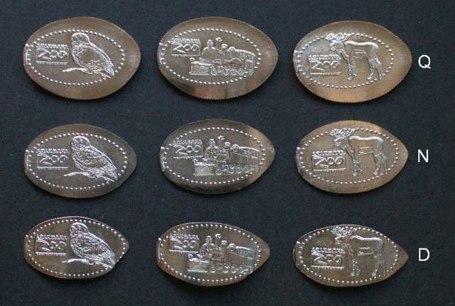 from machine #2 repeat some themes used on machine #1. These sets are pressed on copper cents that