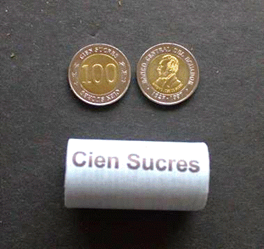 roll of 20 x 100 uncirculated sucres from Ecuador. |