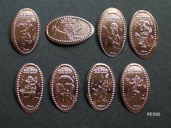 found in the arcade. 3 pennies with a music theme Mickey with trumpet; Donald with trombone; jester Goofy [Presscoins #RES0083-0085] |