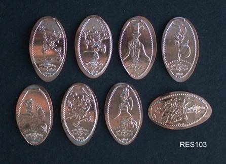 of 8 pressed on zinc pennies supplied by the machine. Some designs are similar to older designs,
